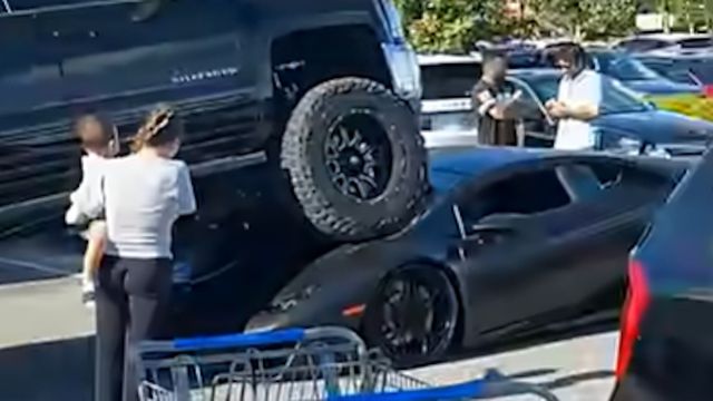 Vídeo: picape gigante passa por cima de Lamborghini em estacionamento