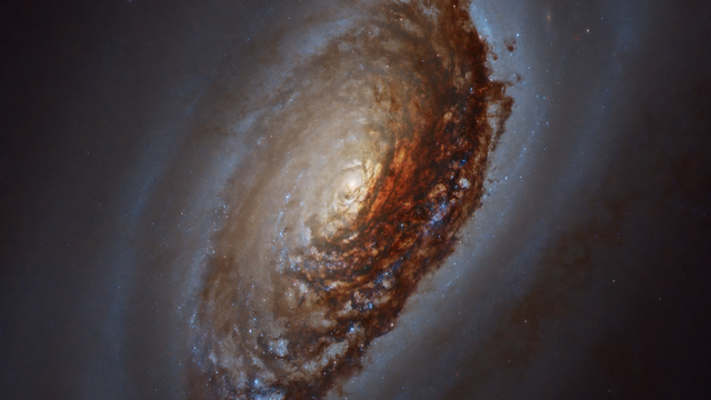 A galáxia espiral Messier 64 (M64) está na foto destacada pela NASA nesta quinta (20), no site Astronomy Picture of the Day. A imagem foi capturada pelo telescópio Hubble, e mostra a M64 a 17 milhões de anos-luz de nós.